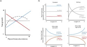 A new paper is out with Ines Ibáñez along with Zak lab collaborators that delves into questions about the true relationship for mycorrhizal fungal relationships with plants and how nitrogen availability affected their behavior. This study looked at growth data in mature trees for two different maple species and one oak species, AMF and EMF-associated, respectively, across a gradient of nitrogen availability. Using this data, we studied the association with specific mycorrhizal taxa to determine whether they had positive, neutral or negative associations with tree growth. As these associations my contribute to how plants respond to future warming conditions, increase N deposition and increased carbon dioxide, it is critical to generate quantifiable data regarding tree performance to help predict future tree growth. The article is titled “Mycorrhizal Fungi Influence on Mature Tree Growth: Stronger in High-Nitrogen Soils for an EMF-Associated Tree and in Low-Nitrogen Soils for Two AMF-Associated -Trees” and can be found here ...